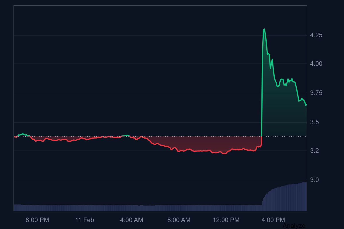 Following the announcement, the UNI’s price surged over 23% within minutes, rising from approximately $3.3 to $4.28. The development could accelerate the integration of traditional finance and blockchain technology.