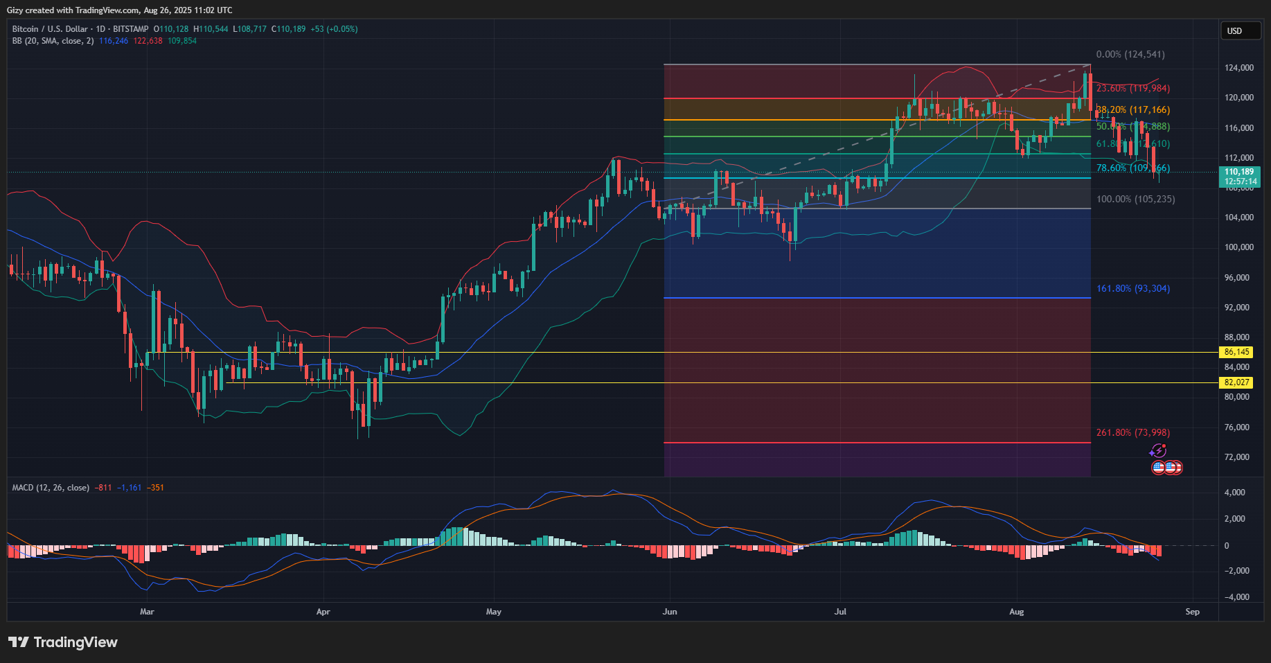 However, the bollinger bands show the apex coin trading at a critical level. BTC is trading at the lower band after breaking below it hours earlier. Additionally, the fibonacci retracement levels reveal that the coin is at the 78% mark. The level is not a tough support, indicating that the asset must hold it or risk further downtrend.