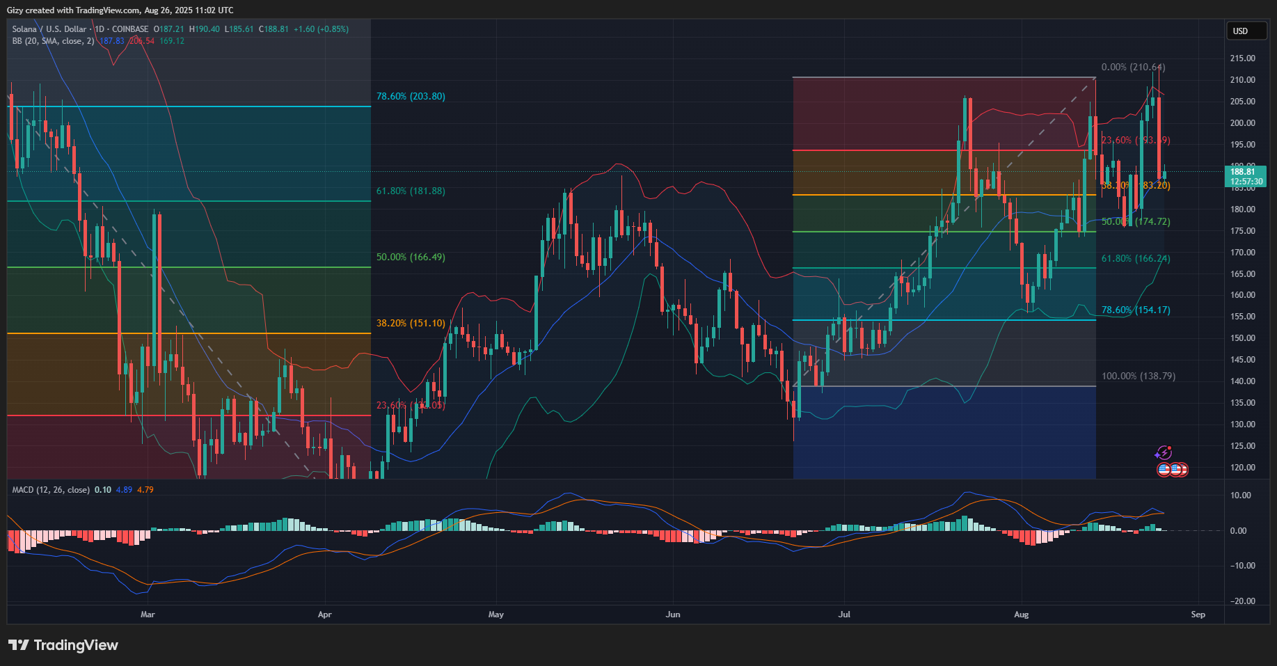 SOL printed one of its longest candles on Monday. However, it registered significant losses, retracing from $213 to $185 and losing almost 10%.