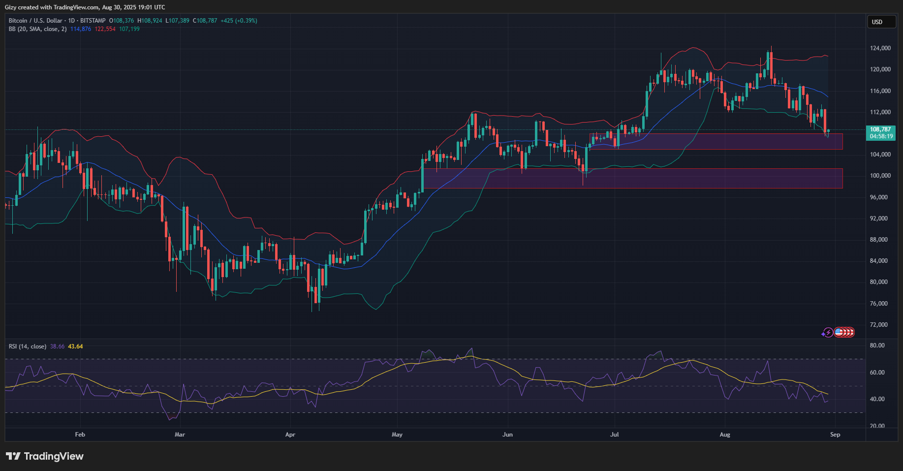 A previous analysis noted that the apex coin has two demand zones, with the first spanning between $108k and $105k. It noted that it will see a notable pullback within this zone. The latest drawback marks the second time in August that the asset has traded around this zone.