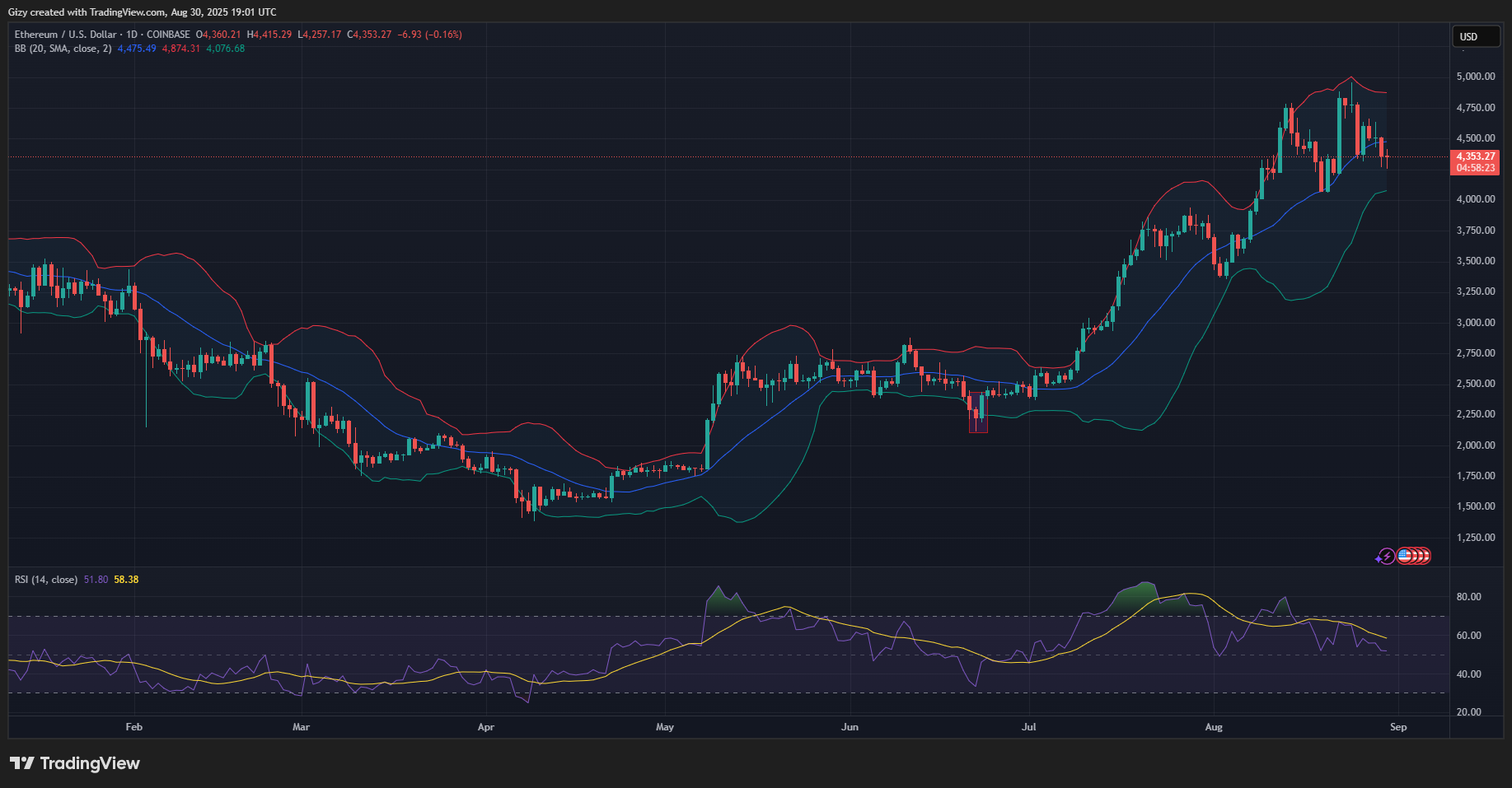 ETH is printing a doji at the time of writing. However, the latest candle depicts notable improvement from the previous intraday session. Ethereum started that session at $4,511 but retraced to a low of $4,268, slipping below $4,300 for the first time in the last seven days.