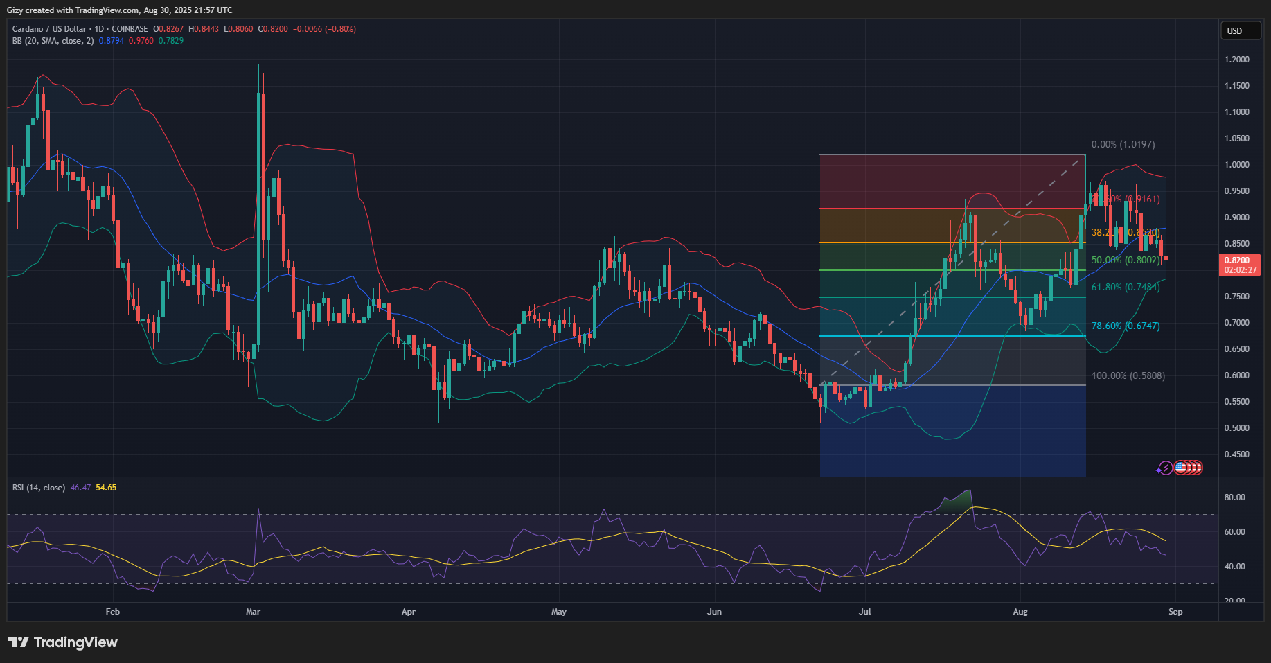 A look at the 1-day chart reveals that Cardano has been predominantly bearish over the last five days. It kicked off on Monday with significant losses, retracing from $0.94 to $0.83 and ending the day with a loss of almost 8%.