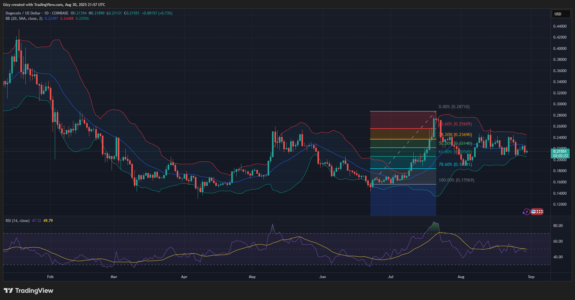 The bollinger bands show that DOGE rebounded from the lower line on the first day of the week. It repeated the same trend on Tuesday, suggesting that the mark served as tough support. However, it is also worth noting that the fibonacci retracement levels also pointed to $0.205 as a critical level.