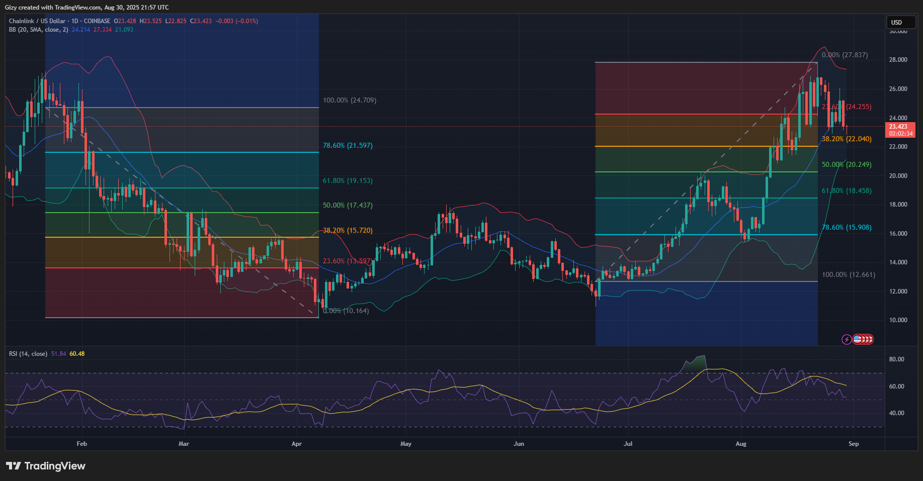 However, the 1-day chart shows that the altcoin saw a pullback at the same level twice. LINK rebounded to $22.8 a few hours ago after testing the mark on Tuesday. The price movement indicates the mark as a short-term support.