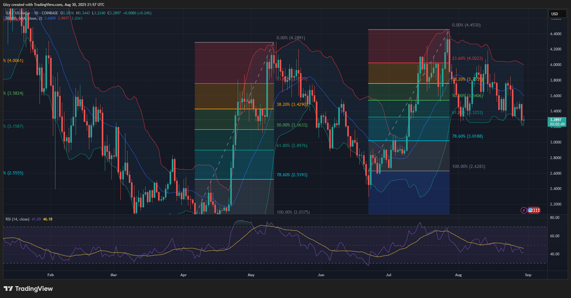 However, the 1-day chart shows that the altcoin saw a pullback at the same level twice. SUI rebounded to $3.2 a few hours ago after testing the mark on Friday. The price movement indicates the mark as a long-term support.